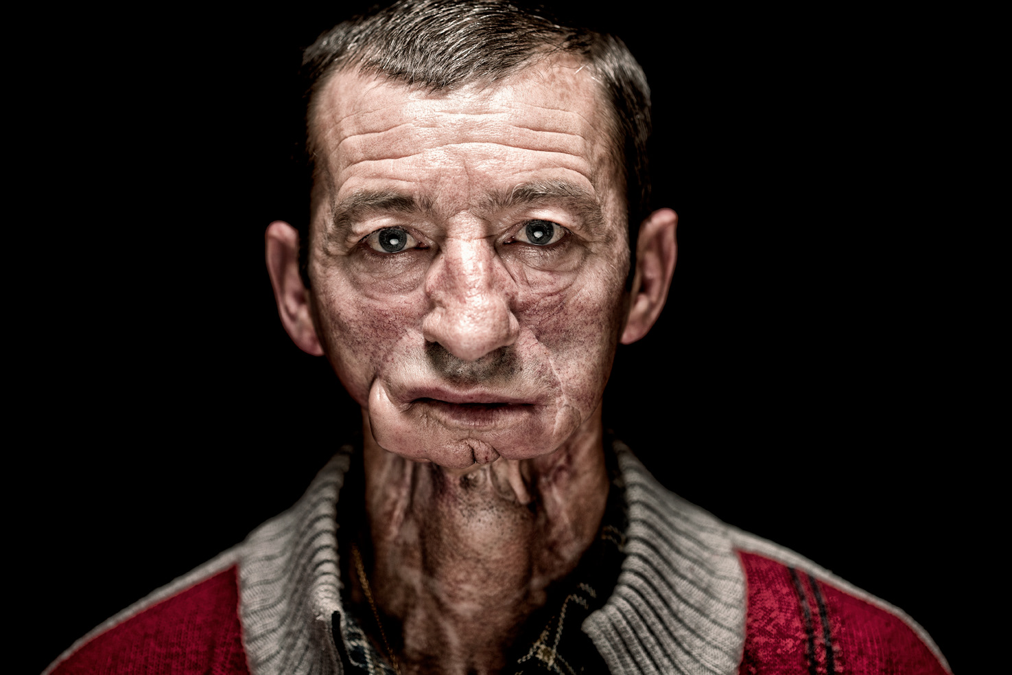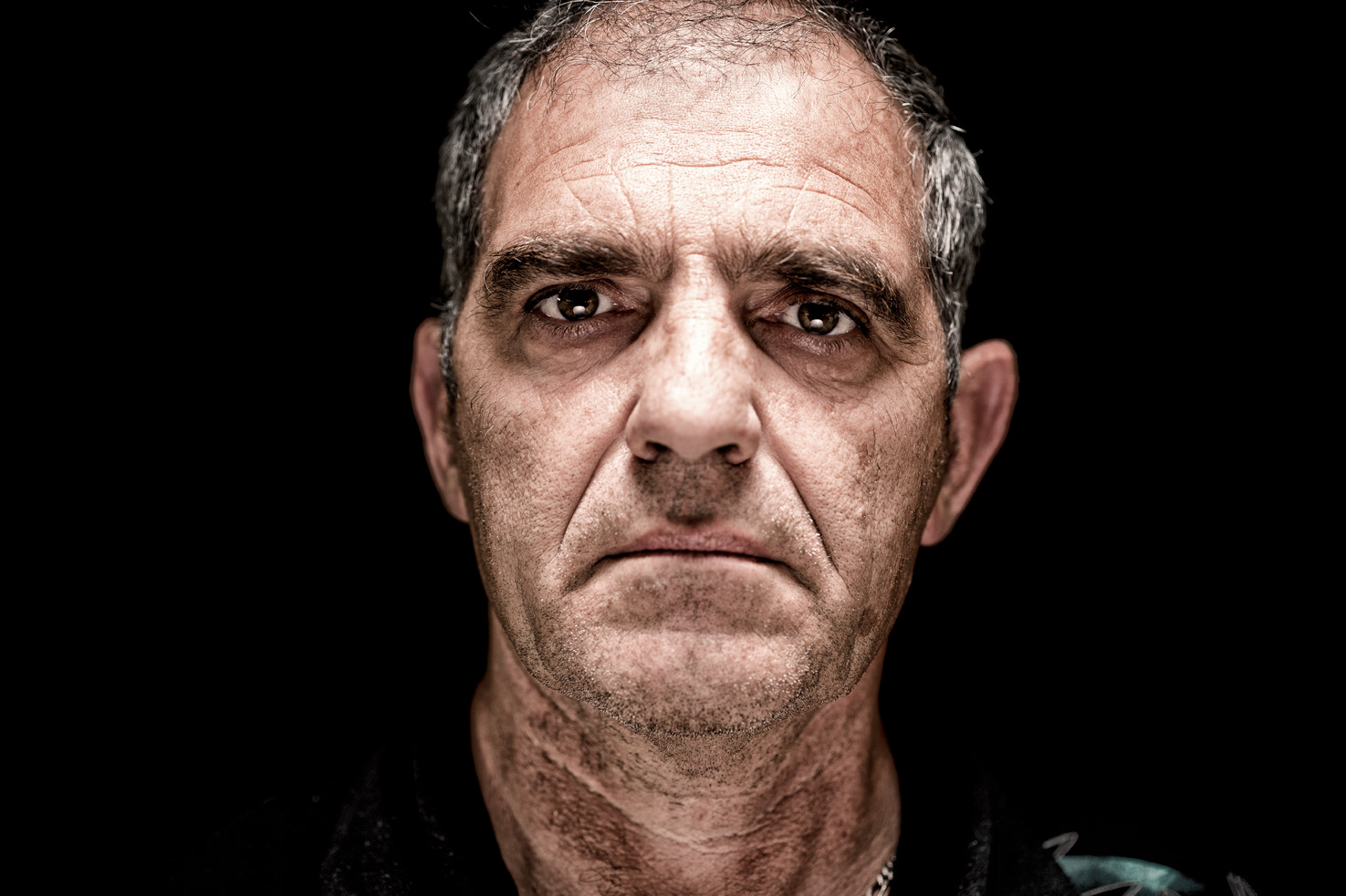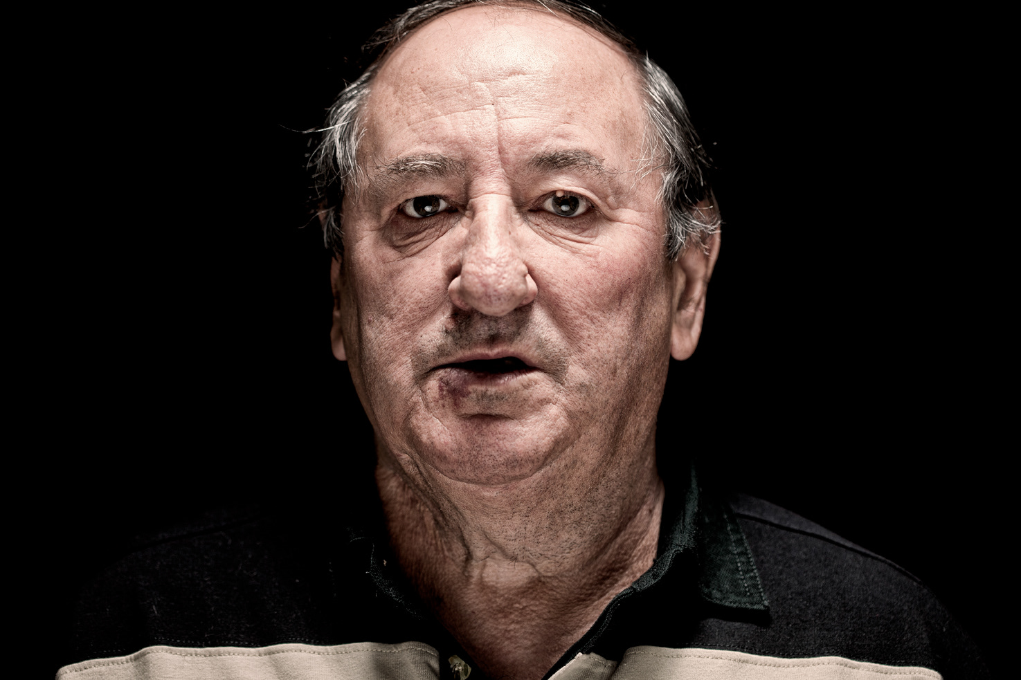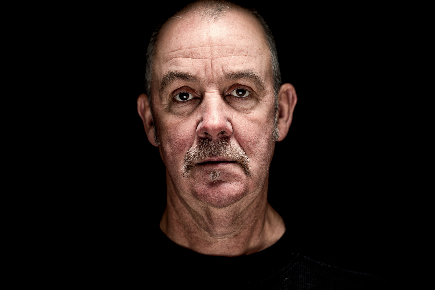 Les visages de ces hommes de classe – et classe vaut ici pour la classe ouvrière comme pour la distinction et l’élégance de leur stature- figurent charnellement leurs colères, leurs humiliations, leurs espoirs et les meurtrissures des combats indéfiniment recommencés. Le fond noir sur lequel chaque identité se présente autant qu’elle se retire sur l’énigme de chacun ne laisse voir qu’un point commun, la dignité qui tient tête. Si le travail abime les corps, les peaux, les mains, et les désirs, le regard de ces hommes montre par sa tenue qu’ils méritent le titre de héros que jamais on ne leur concède mais qu’ils continuent de gagner tous les jours de haute lutte même quand l’usine a, depuis longtemps, fermé.